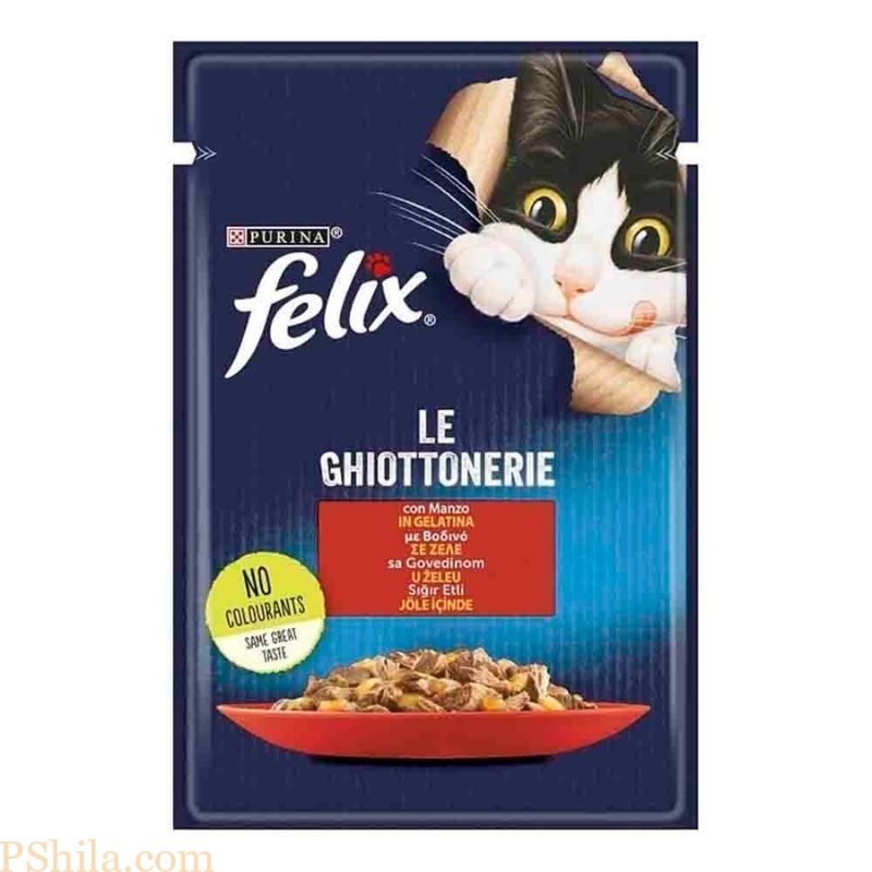 پوچ گربه فلیکس با طعم گوشت گاو در ژله ۸۵ گرمی
